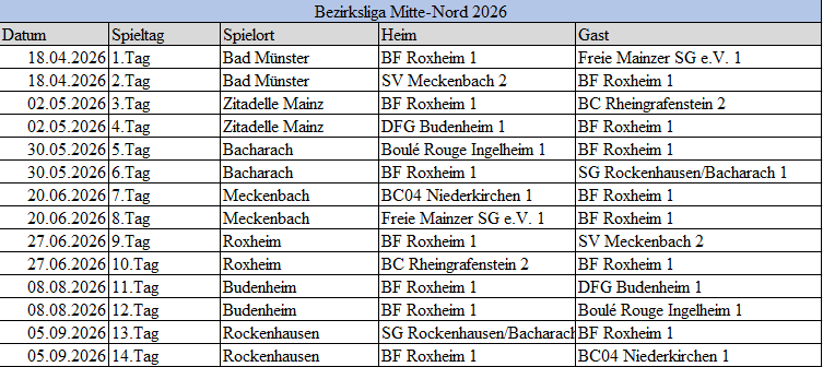 Spieltage Bezirksklasse Mitte-Nord 2026